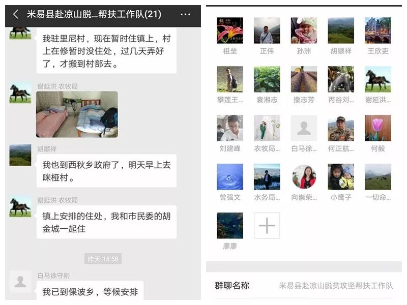 为方便工作交流,专门建立“米易县赴凉山脱贫攻坚综合帮扶工作队”微信群,县委组织部、选派单位分管领导及帮扶队员加入微信群,搭建交流平台。帮扶队员定期通过微信群反馈工作、生活情况,交流汇报工作中的困难问题。